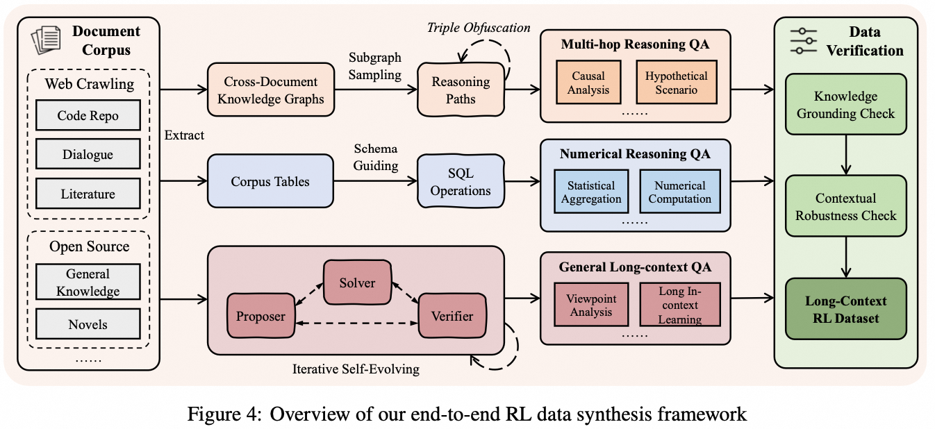 Long-context reasoning is a critical capability for modern Large Language Models (LLMs), yet a significant gap exists in the post-training stage. The field lacks a mature, end-to-end system that provides: (1) a scalable pipeline for synthesizing challenging long-context reasoning data, (2) reinforcement learning (RL) methods tailored to the nuances of long-context reasoning, and (3) agent architectures designed to operate on information streams that exceed the model's context capacity.